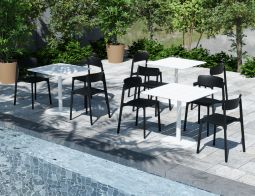 Its black polypropylene frame is both durable and easy to clean, making it ideal for use in high-traffic areas such as hotels, restaurants, and bars.